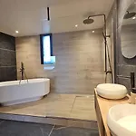 Bathroom facilities at O Temps Suspendu Piscine Interieure, Spa, Sauna Prives En Campagne villa also include a shower.